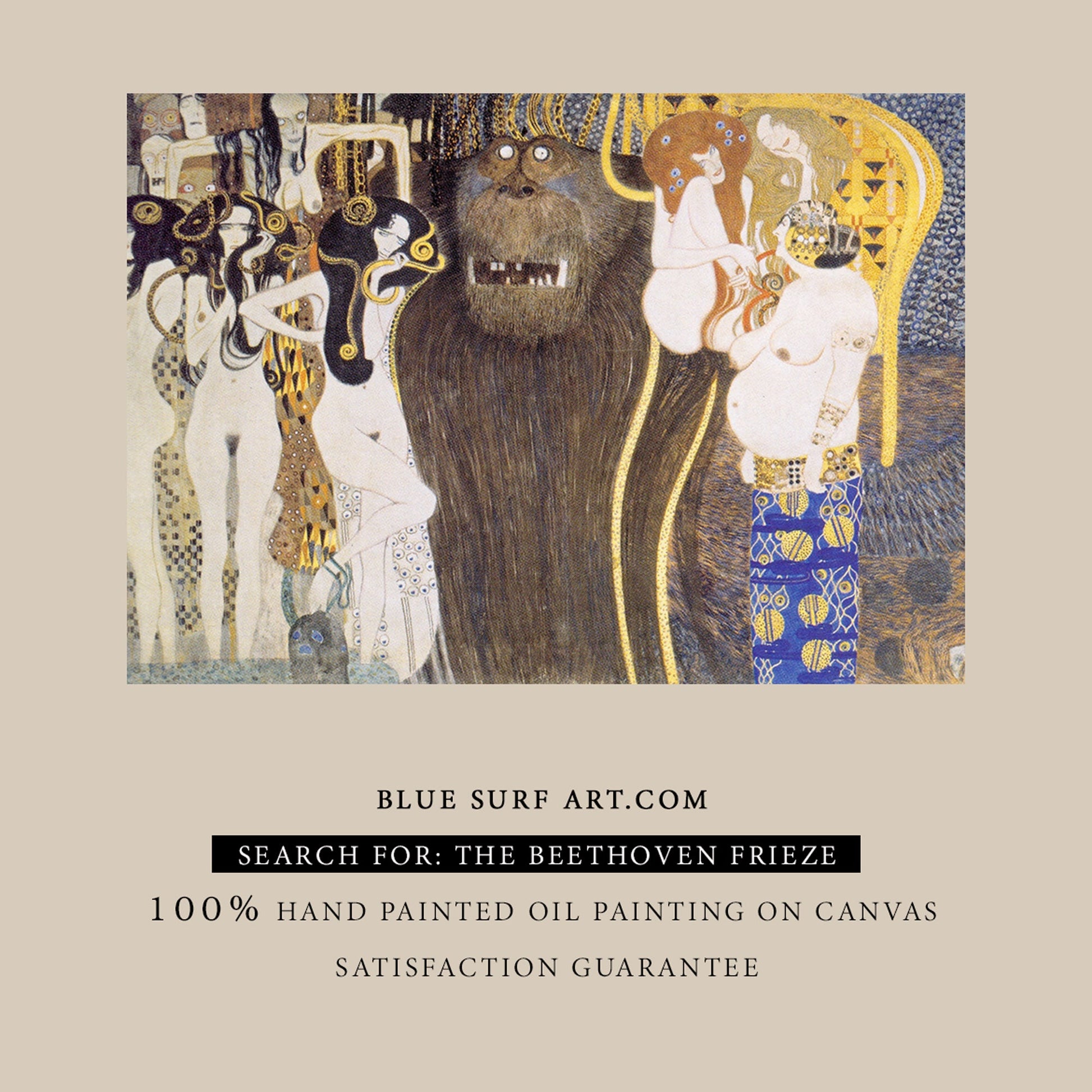 The Beethoven Frieze, The Hostile Powers Part 1 by Gustav Klimt can be reproduced with the same emotions of the original masterpiece. In our in-house studio artists carefully recreate the painting detail-by-detail, colour-by-colour to near perfection.